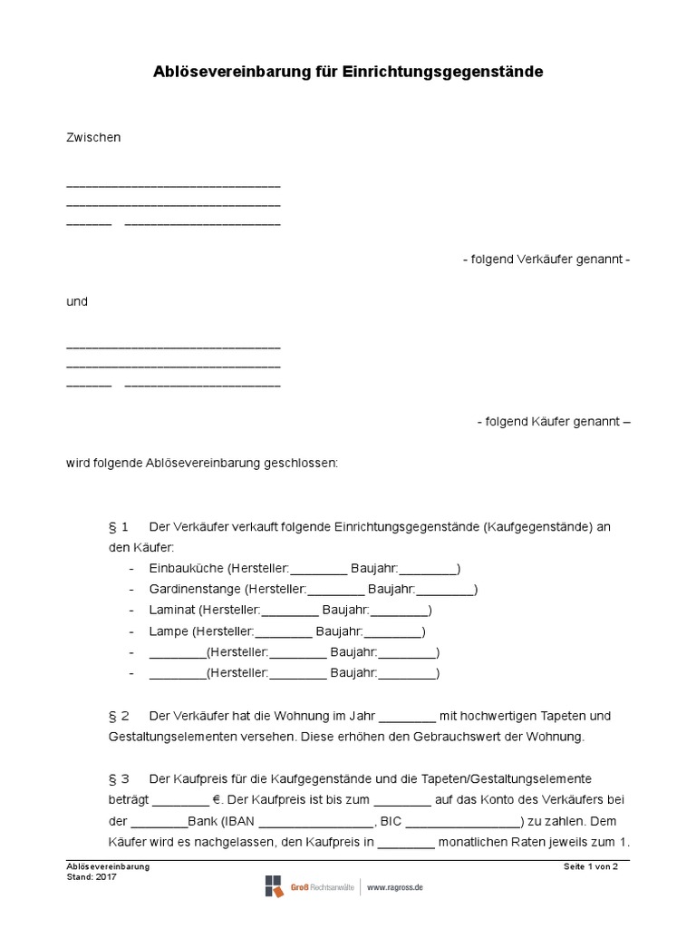 Ablösevereinbarung Vorlage Kostenlos | Check spelling or type a new query. Maybe you would like to learn more about one of these? We did not find results for: